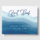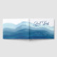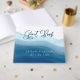 Este fondo de acuarela azul y moderno se asemeja a una ola que rodea la portada del libro de huéspedes. Presenta "Libro de invitados" en un tipo de letra de guión. El diseño perfecto para un boda acuático, playero y moderno.