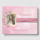 Hermoso libro de invitados con fondo de luces bokeh rosadas, lazo rosa, diamantes, zafiros rosados y perlas. Agrega tu foto favorita en un marco dorado. Personaliza con tu nombre y fecha. Perfecto para Bat Mitzvah y Quinceañera. Hermoso recuerdo para un adolescente especial.