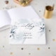 Libro de invitados de boda | Hojas etéreas Verde azuladas polvorientas y lavado de acuarela, este hermoso ilustracion acuático pintado a mano ofrece tonos de Verde azulado mutado con luces de colores. La caligrafía manuscrita se combina con un tipo de letra minimalista y contemporáneo. Un look de moda para todas las temporadas. Esto es parte de una colección de artículos de papelería boda Watercolor Dusty Verde azulado Foliage con accesorios bodas a juego. © WhimsicalArtwork creado para el BarefootBride™