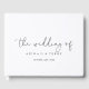 Este sencillo y elegante libro de bodas de caligrafía es perfecto para un boda rústico. El diseño, sencillo y elegante, presenta una tipografía de escritura clásica y elegante en blanco y negro. Personalizar la portada y la columna vertebral para incluir los nombres de la novia y el novio y la fecha del boda.