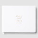 Este elegante libro de boda de guiones de oro es perfecto para un simple boda. El minimalista diseño dorado y blanco presenta una elegante tipografía romántica con un estilo moderno de cristal. Personalizable de cualquier color. Mantenga el diseño minimalista y elegante, como está, o lo personalice añadiendo sus propios gráficos y obras de arte. Personalice la portada con los nombres de la novia y del novio y la fecha del boda.