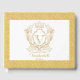 Este diseño boda se llama Boda de Monograma Dorado Elegante. El fondo es un patrón de purpurina de arenque de oro. En el centro de muchas piezas hay una entrada blanca para tu texto con el oro creando un marco. En la parte superior de la invitación, hay un escudo de oro con un lugar para sus iniciales o su monograma. Este conjunto tiene invitaciones, guarda las tarjetas de fecha, las tarjetas de respuesta, las tarjetas de agradecimiento, las tarjetas de número de mesa, las etiquetas de los vinos y muchas más piezas de papel de boda, favores y regalos disponibles. Todos los elementos están impresos en nuestros productos de alta calidad, no incluyen oro, joyas, bordados u otros elementos textiles reales. Todos los diseños son derechos de autor Notable Expressions, Inc. Todos los derechos reservados. Por favor, envíeme un correo electrónico a Nique@NoteableInvitations.com para encontrar diseños, productos, correspondencia de colores o solicitudes de personalizados.