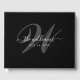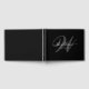 Elegante libro de boda en monograma blanco y negro personalizado con un tipo de letra de escritura moderno. Personaliza fácilmente en línea. Artículos de bienvenida disponibles para complementar este minimalista y elegante libro de visitas.