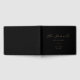 Este elegante libro de invitados negro presenta escritura moderna y fuentes serif con un gráfico de hojas en oro. Este libro de invitados personalizado se puede personalizar para incluir nombres, una fecha especial, su preferencia de color y más.