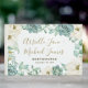 El diseño presenta una corona de flores de acuarela en marfil y champán con suculentos, eucaliptos y otros tipos de vegetación para un moderno pero vintage estilo clásico. Este artículo también presenta una tipografía elegante en textos impresos en bronce/marrón y oro.