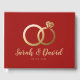 Un hermoso libro de bodas con falsos anillos de bodas dorados - completamente personalizado a tus detalles. Este diseño clásico es una excelente opción para cualquier recepción de boda.