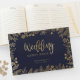 Un hermoso libro de bodas Midnight Blue con flores de Relieve metalizado de oro falsas - completamente personalizado a tus detalles. Este diseño clásico es una excelente opción para cualquier recepción de boda.
