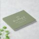 Este mínimo libro de boda de sabios con páginas en blanco es perfecto para un boda boho. El diseño presenta una sencilla silueta de hojas de vegetación en un color verde polvoriento con un estilo de boho de montaña minimalista. Personalice la portada con los nombres de la pareja y la fecha del boda.