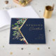 La vegetación Navidad moderna | el libro de visitas de la marina es perfecto para tu simple boho de invierno. Diseñado con Relieve metalizado geométrico falso oro y acuarela botánica minimalista con toques de eucalipto verde y winterberry rojo. Todo sobre un fondo azul marino clásico. Estos elementos le confieren un toque moderno y elegante que le confiere un toque de elegancia. Puedes personalizar con tus propias fotos o mantenerlo tal cual. ¡Asegúrate de mirar el resto de la colección para completar tu tema boda!