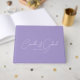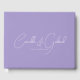 Esta caligrafía de escritura blanca sobre el libro de bodas de lavanda es perfecta para un boda moderno. Diseño minimalista sencillo.