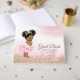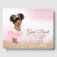 Un libro de oro y rosa para una ducha de bebé con una adorable princesa afroamericana con un tutu de bailarina rosa bonito y una corona dorada con una cuerda de perlas en un hermoso fondo rosa y dorado. Puede personalizar fácilmente este lindo libro de invitados de una ducha de bebé simplemente añadiendo su texto. También puede quitar el fondo y agregar el color de fondo de su elección.