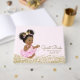 Princesa baby ducha libro de invitados con una adorable princesa de origen africano, bebé, vestida con un tutu rosado de bailarina bonito y una corona dorada con una hilera de perlas sobre un hermoso fondo rosado y purpurina dorado. Puede personalizar fácilmente este lindo libro de invitados de una ducha de bebé simplemente añadiendo su texto. También puede cambiar el color de fondo.