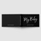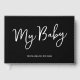 Libro de bebé personalizado negro con escritura para madre tiene un diseño minimalista y elegante, perfecto para preservar el amor y los recuerdos de una madre. El texto blanco sobre fondo negro añade un toque atemporal, con "Mi bebé" en escritura y el nombre del niño con Est. 20XX en una fuente moderna sans-serif. La columna vertebral dice "Un libro de momentos y recuerdos", mientras que la contraportada lleva el mensaje sincero "Con todo mi amor, mamá".