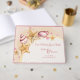 Hermoso libro de bodas con conchas coloridas y acentos de color rosa. Actualice fácilmente el texto para satisfacer sus necesidades. ¡Absolutamente hermoso!