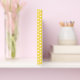 libro de bodas amarillo bonito con un pequeño patrón de puntos de polka blanco. Una cinta gris, en la parte delantera del libro, tiene texto blanco personalizado y gráficos de una margarita amarilla y blanca. Personalice los campos de texto para su día especial.