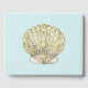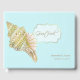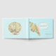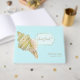 Elegante libro de invitados de bodas hecho en azul acuático claro con gráficos de una concha de caballo de tono dorado, en la parte delantera y una concha de vieiras, en la parte trasera. Un área de texto decorativa en placa con puntos dorados tiene un gráfico de tono dorado que lee el Libro de invitados. Un texto tan personalizado, en la parte inferior derecha, está listo para personalizar para su día especial.