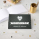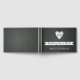 Corazón de papel en pizarra con libro de boda monograma que incluye un corazón de amor de papel portátil con agujeros alrededor en pizarra. En el corazón están tus iniciales.