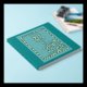 Libro de invitados de boda azul tono joya floral con lámina metálica real. Diseño floral elegante. Azul tono joya (algunos también consideran este color un tono fresco de cyan). Texto personalizado en la portada y lateral del libro. Papelería ideal para tu boda. Utiliza la plantilla para crear tu propio libro de invitados de boda azul y dorado con lámina metálica.