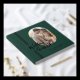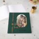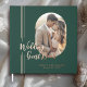 Un elegante libro de bodas único con Relieve metalizado de oro real y estilo moderno en un popular fondo verde esmeralda. El diseño incluye una plantilla de foto ovalada para incluir la foto seleccionada. El texto del Libro de Invitados de boda se explica en la tipografía de escritura moderna y se acentúa con gráficos de línea simples. Personalice la plantilla de texto con sus nombres y fecha de boda. La columna vertebral de este libro de visitas también tiene una plantilla de texto para personalizar como quieras. Se puede elegir entre 3 tonalidades de Relieve metalizado dorado: oro rosa (que se muestra aquí), oro o plata.