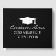 Libro de invitados para personalizados de educación secundaria. Elegante plantilla de diseño en blanco y negro con el logotipo académico de gorra de tassel. Dejen que los estudiantes y los invitados escriban sus comentarios. Plantilla de tipografía de script de clase. Los colores se pueden cambiar.