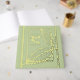 Gran libro de boda verde sabio con Relieve metalizado de oro real. Texto personalizado en la parte delantera y lateral del libro. Diseño de hojas modernas. Utilice la plantilla para crear su propio libro de Relieves metalizados de boda verde sabio.