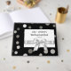El libro de bodas minimalista, sencillo pero elegante, incluye puntos de polka sobre negro con un arco plateado.