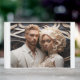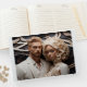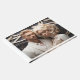 Una pareja boda contemporánea vestida con ropa blanca, un libro de visitas para que los amigos y la familia lo disfruten.