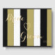 Boda Libro de visitas Black Gold White Stripes Patrón de tipografía elegante, puede agregar nombre de novia, nombre de pila y fecha