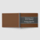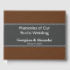 Este libro de bodas incluye el título "Recuerdos de nuestro Boda rústico", junto con nombres personalizados y una fecha personalizada, y un patrón a rayas con rayas marrón claro y marrón oscuro.
