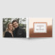 Este libro de huéspedes es un elegante y refinado lugar para su día especial. Presenta un diseño sencillo y elegante con delicados acentos de Relieve metalizado que resaltan nombres y detalles clave. Elija entre Relieve metalizado de oro plateado o rosa para que coincida con el estilo de su evento y agregue un timbre sutil a la cubierta. La parte trasera ofrece espacio para una foto personal, perfecta para mostrar un momento de compromiso o retrato favorito. Ideal para bodas, aniversarios o celebraciones de hitos, este libro de huéspedes combina el diseño atemporal con un toque personal, creando un hermoso espacio para que los huéspedes compartan su amor y sus recuerdos.