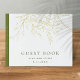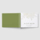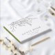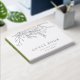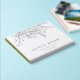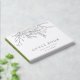 Moderno, lúdico y a la vez sofisticado, este libro de bodas cuenta con un ramo floral de Relieve metalizado dorado, a mano, adornado con una tipografía de moda en un verde oscuro, que se coordina con el verde claro en el reverso. Arte original y diseño de Annie Montgomery Design.