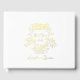 Permita que los huéspedes escriban sus deseos y sentimientos con nuestro Relieve metalizado dorado Monograma Escudo Dibujado a mano Boda. Este diseño presenta un ilustracion caprichoso y caprichoso, lo que lo convierte en un conservador único y le añade un toque de brillo y romanticismo a sus recuerdos bodas.