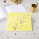 Romántico amarillo soleado con un beige dorado deja un libro de invitados con un monograma de moda para bodas de verano y primavera, para celebraciones dulces, para un fiesta de jardín y para pequeñas empresas de moda.