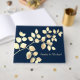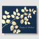 El romántico azul oscuro con un beige dorado deja un libro de invitados con un monograma de moda para bodas de verano y primavera, para celebraciones dulces, para un fiesta de jardín y para pequeños negocios de moda.