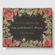 Un bonito libro de huéspedes floridos de negro con un diseño de arte floral de estilo victoriano. El texto de la parte delantera puede personalizarse en cualquier mensaje, o el texto puede eliminarse. El fondo negro se puede cambiar a cualquier color para coordiante con el tema boda.