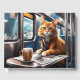 Visitas Un gato lindo con un libro de café y periódico