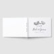 Un libro de bodas con mariposas juguetonas. Ilustracion romántico con dos mariposas enamoradas. Diseño caprichoso y anticuado con tipografía de escritura elegante. Opciones en blanco y negro o en color.