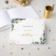 Un color de fondo blanco. Decorada con vegetación eucalipto, follaje dorado y polvo falso purpurina de oro. Añadir un nombre, edad y fecha. Espina: agrega tu propio texto.