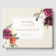 Flores de color borgoña y melocotón con acentos dorados adornan este libro de bodas, perfecto para bodas románticos, botánicos, boho de verano o otoño.