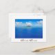 Postal de una vista aérea sobre la isla tropical de Bora Bora con laguna turquesa en el Océano Pacífico cerca de Tahití en la Polinesia Francesa con un borde blanco y el texto: 'Bora Bora'.