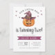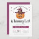 Una acuarela bruja gorra y calabaza dulce jack-o-lantern te hará amar esta invitación de cumpleaños de Halloween. "Nuestro Pequeño Boo cumple dos años" se escribe con letras extravagantes - ¡puedes editarlo por cualquier edad! Agregue información de rsvp en la parte inferior.