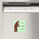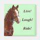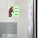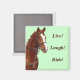 Magnate frigorífico con un cuadro de un caballo de pura raza de color castaño y la leyenda "Live! ¡Ríe! ¡Viaja!". Este imán es personalizable. Haga clic en el botón personalizar.