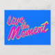 Vive el momento texto de inspiración rosa brillante, azul real, amarillo y cian que dice / slogan postal gráfica del estilo de los años 80. Ideal para tarjetas promocionales. © Diseñado por Sarah Trett para www.sarahtrett.com