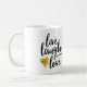 La taza de café viva moderna del amor de la risa creó por Colourful Designs Inc. este moderno y la taza de café elegante es un regalo perfecto para los veinte dólares inferiores. El corazón hermoso del efecto metalizado de la tipografía y de oro le hace un regalo elegante que usted puede ser orgulloso dar hacia fuera. Copyright 2015