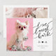 Una tarjeta de vacaciones divertida y moderna con un juego de palabras "Live Laugh Bark" en una fuente de escritura manuscrita popular y arte de acuarela de piña y bayas. Agrega 2 de tus fotos (o pide tal como está con el famoso perro Sparkle The Tiny Chi), nombre y año o cualquier texto que desees. La parte trasera cuenta con una plantilla de foto panorámica con un mensaje de vacaciones personalizable y espacio para tu firma. CONSEJO DE FOTO: Pre-recorta tu foto ANTES de subirla y/o usa la herramienta de RECORTE en la sección PERSONALIZAR para ajustar la ubicación dentro del área de la plantilla. Para obtener ayuda con el diseño o la personalización o para transferir el diseño a otro producto, contacta al diseñador ANTES DE PEDIR a través de la pestaña de MENSAJE de Chat de Zazzle debajo o envía un correo electrónico a thepetstarofficial@gmail.com. Para
