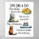 Poster de gatos humorísticos con pistas sobre cómo vivir tu vida como un gato. Ilustraciones de estilo personalizado de gatitos. Esta es una cita que he creado y trato de vivir tanto como sea posible. Un gran regalo para una dama de gato o un tipo de gato. Gráfico asistido por IA adquirido con licencia comercial. Pintura: PaintPixelCo
