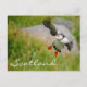 Postal de un pájaro de fúnebre volador que aterriza con alas extendidas en Escocia con el dedo: 'Escocia'.