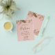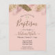 Tipografía de letra rosa. Salpicadura de pintura con brillo falso dorado, plateado y rosa. Invitaciones de presupuesto para celebración de bautizo. Puedes agregar fotos en el reverso o texto adicional si es necesario.