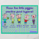 Estos cinco pequeños lechones pueden ayudar a recordarle a todos la buena higiene. Sería genial para las escuelas. La parte posterior está en blanco y se puede personalizar con su propio texto. Los folletos también se pueden doblar para enviarlos por correo.