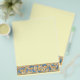 Un bonito ilustracion victoriano o gótico con elegantes plumas flotantes en azul y crema sobre un fondo azul y tostado.